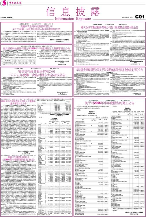 湖北福星科技股份有限公司2005年半年度报告正文及摘要更正公告