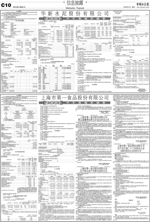 上海市第一食品股份有限公司2005半年度报告摘要