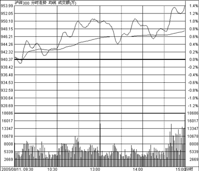 沪深300指数8月11日收盘953.99点,上涨1.45%