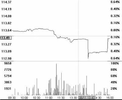 而企业债的反应也十分强烈,当日企债指数开盘处于小幅上调中,上午11点CPI数据刚一公布,企业债突然上演高台跳水,出现深幅调整,20分钟内跌幅已达0.18%,午盘后下调趋势加剧,于2点后回升,至收盘时跌幅达0.19%,成交量也放大5倍至20万手,成交金额增至2.2亿元。其中,04中石化、03浦发债跌幅居前。