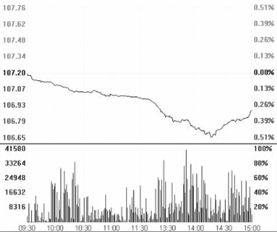 昨日国家统计局公布,7月份居民消费价格总水平比去年同月上涨1.8%,不仅超过预期中1.3%的涨幅,而且高于6月份1.6%的涨幅,结束了CPI从3月份开始的逐月下降的趋势。这一结果出乎市场意料之外,预示着通胀压力重新显现。数据一公布,债市早盘立即大幅下调,上证国债迅速跌破107点,午后更是一路下滑,盘中最低106.66点,当时跌幅超过0.5%。下午2点15分后国债指数重新回升,收盘106.89点,单日跌幅达0.29%,创下自5月30日来的最大跌幅。成交量也急剧放大,当日上证国债成交金额24.1亿元,为3月8日来的最大值,市场恐慌性抛盘迹象显露。长期债跌幅惊人,0107、0213、0303、0501跌幅均超过1%,其中20年期的0107跌幅1.54%。