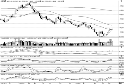 红柱放大,DIFF与DEA继续上行,强势快速RSI继续向上进军,仍有上攻的动力KD强势上攻,J值已严重超买,调整压力呈现PDI、MDI金叉开口小幅放大,有进一步转强的趋势