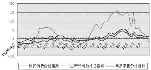 2002年开始的中国经济新一轮长期快速增长周期,一个基本特征就是“高增长低通胀”组合,通货膨胀问题不再成为影响宏观经济运行的主要问题,相反,通货紧缩问题会不时地困扰我们,影响经济的稳定增长。即使在经济最热的时候,通货膨胀率也是有限的。如2004年以来,生产资料价格总指数(流通环节)持续近一年半保持10%以上的增长,工业品出厂价格连续1年多保持6%以上的高增长,但CPI增长仅6月份至9月份的连续四个月超过5%,之后增幅逐月回落,说明总供给增长持续地大于总需求是一种常态。通货膨胀只是一个“小插曲”,难以持续。