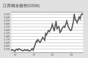 高盛日前出席江西铜业(0358.HK)的投资者会议后发表研究报告,指出公司今年首季少于5%的毛利来自加工费用,大部分来自自给的铜及贵金属业务,降低了公司在加工费用下跌时的风险。另外,30万吨冶炼厂扩展计划为上游业务提供增长潜力,故高盛给予江铜“跑赢大市”评级,目标价6.7港元。江铜现价对帐面值折让45%,但预测06年度股本回报率达28%,该行表示,今年全球铜产量预期下跌,主要的生产商铜产量料减少1.5%或25万吨,此将有利铜价上升及江铜业绩前景。