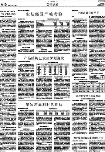 今年,公司最大的压力依然来自干货箱,但主要压力不是干货箱的需求,而是干货箱的竞争局面发生了较大的变化。由于2004年-2005年上半年集装箱需求旺盛,下游企业一度面临一箱难求的紧张局面,马士基、中海等下游企业开始进入这个行业;行业内扩产也非常迅速,2003年-2005年行业干货箱产能增长了140万TEU左右,行业协会预计到2007年干货箱产能可能达到580万TEU,而2006年全球需求仅仅在300万TEU以内。因此,中集集团2006年干货箱的竞争局面将非常激烈。目前钢材价格有所回升,预计干货箱价格可能稳定在1500美元-1600美元,但较上年的价格下降20%左右。