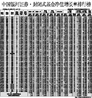 中国银河证券·封闭式基金净值增长率排行榜