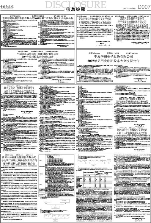 东睦新材料集团股份有限公司2007年第二次临时股东大会决议公告