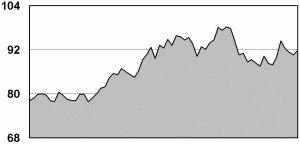 NYMX WTI 原油活跃期货合约 美元/桶 90.97 91.82 1.23