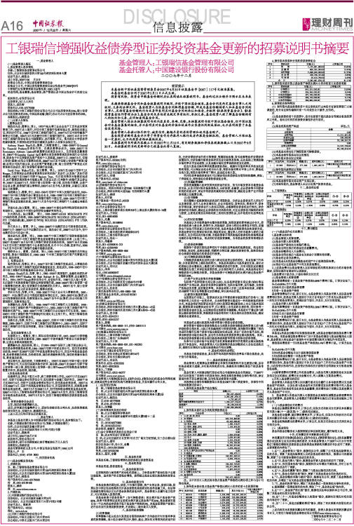 工银瑞信增强收益债券型证券投资基金更新的招募说明书摘要