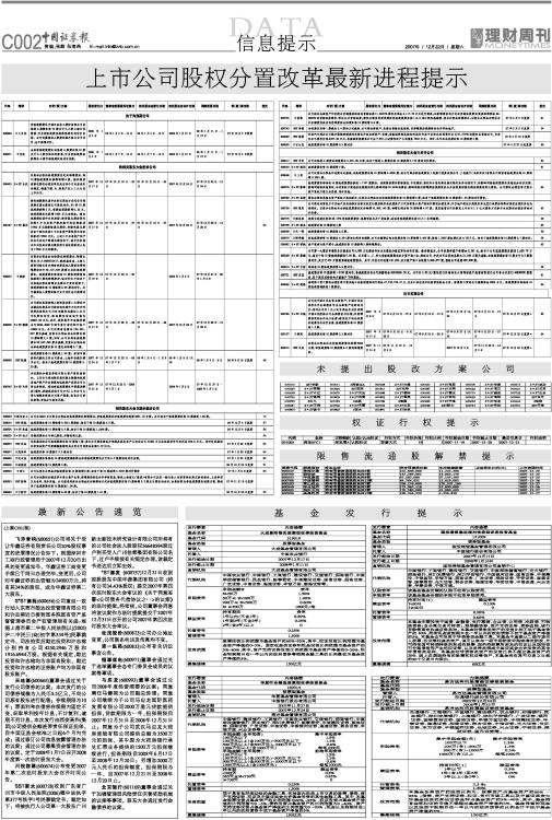 上市公司股权分置改革最新进程提示