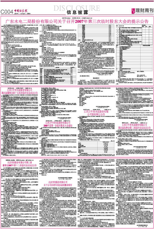 广东水电二局股份有限公司关于召开2007年第三次临时股东大会的提示公告