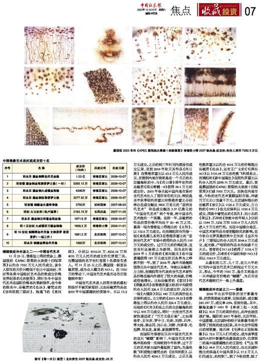 2007秋季艺术品成交排行榜