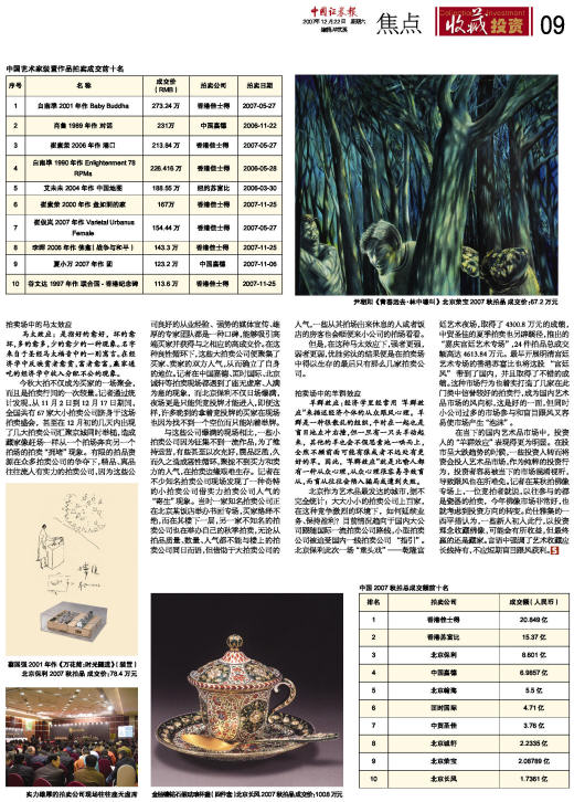 2007秋季艺术品成交排行榜
