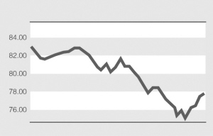 圣诞假期临近,有利美元反弹。同时近期其他经济数据相对较好,似乎显示次贷对美经济增长冲击有限。下周操作上,美元指数继续反弹走势,但升速有所放缓。短线阻力来自于78.00关口。一旦突破此关口并且反复持稳,预计将为后市升向80.00打开空间。否则预计将回落76.80附近。