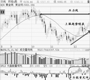 首先,从大盘能量分析。11月29日开始大盘多头能量一直在加强,而且形态上属于连续出现大的多头能量,而不是下跌途中脉冲式的能量。持续放大的能量为中级行情打下坚实的基础。本月已经提高了一次准备金和加了一次息,太保A股发行之后没有新的大盘股发行。利空出尽正是大盘发力反攻的时机。