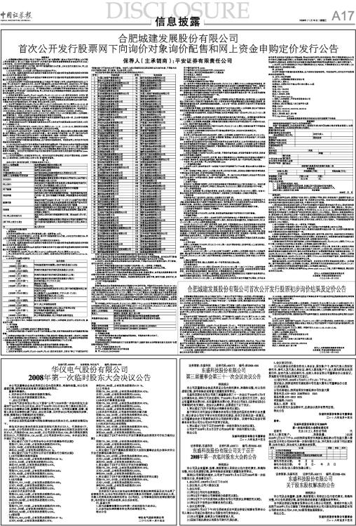 合肥城建发展股份有限公司首次公开发行股票初步询价结果及定价公告