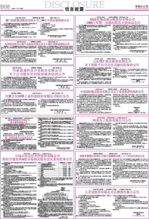 厦门国贸集团股份有限公司二00七年度业绩预增公告
