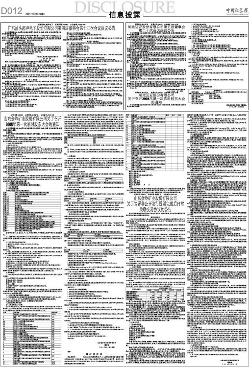 山东金岭矿业股份有限公司关于召开2008年第一次临时股东大会的通知