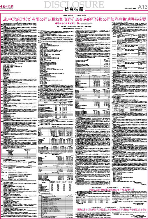 中远航运股份有限公司认股权和债券分离交易的可转换公司债券募集说明书摘要