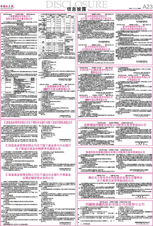 沧州化学工业股份有限公司关于2007年度业绩预告的修正公告