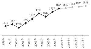其次,钢铁行业产能扩张放缓投资下降将减少供给。在产能扩张放缓与淘汰落后产能步伐加快的前提下,钢铁供给将从高速增长转变为低速增长。从2007年到2010年我国粗钢产量将分别达到4.87亿吨、5.17亿吨、5.56亿吨和6.03亿吨,我们预计2007—2010年钢铁行业固定资产投资增速将维持在20%以下,继续低于全社会固定资产增速,同时期钢铁产量年复合增速为9.27%,低于同期钢铁需求增速。