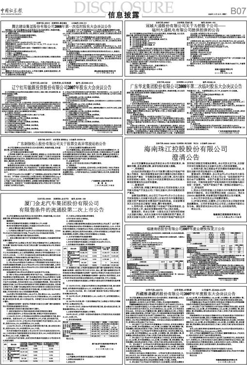 辽宁红阳能源投资股份有限公司2007年股东大会决议公告