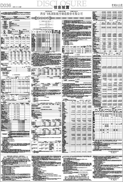 编制单位:西安飞机国际航空制造股份有限公司 2007年12月31日 单位:(人民币)元