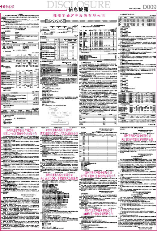 注:郑州宇通集团有限公司质押的6000万股公司股票已于2008年3月28日解除质押。