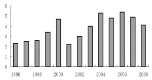 同时,高油价也对水上航运业构成不利影响。自07年下半年以来,油价一直徘徊在高位,并且屡次创出市场新高,今年3月13日,纽约商品交易所4月份交货的轻质原油期货价格盘中一度达到每桶111美元,为历史最高交易价。机构普遍预测2008年国际油价平均水平将维持在85美元/桶左右,高限有可能破130美元/桶,甚至于在突发事件的拉动下达到150美元/桶。船用燃料油价格在450美元/吨左右。
