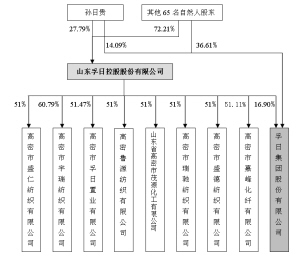 包括孙日贵在内的66名自然人是孚日控股的股东,收购人在本次收购前是孚日股份的控股股东,持有上市公司的股权比例为16.90%,与收购人相关的产权及控制关系如下图所示:(见附图)