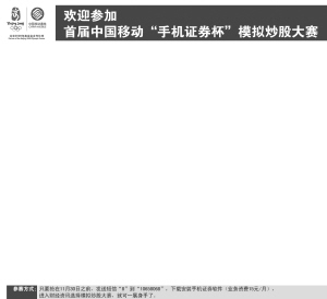 中国移动通信有限公司联合国内32家知名券商共同举办的首届中国移动"手机证券杯"模拟炒股大赛已经开赛。截止10月31日,上证综指从2017点下跌至1728点,调整幅度达14.30%。在缺乏持续热点的调整市中,这次炒股大赛排名前三的选手收益均在20%以上,都有很强的短线选股能力。他们参与的个股基本都是严重超跌股和绝对价格低的个股,并且都采取不恋战、见好就收的交易策略。