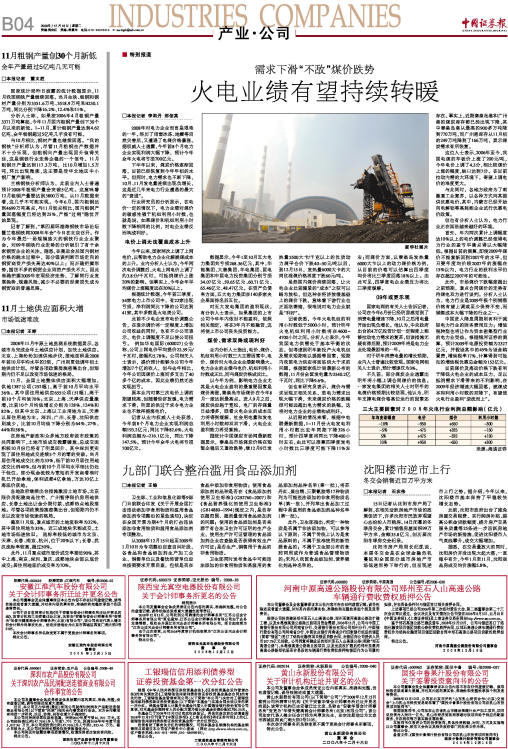 三大主要因素对2008年火电行业利润总额影响(亿元)
