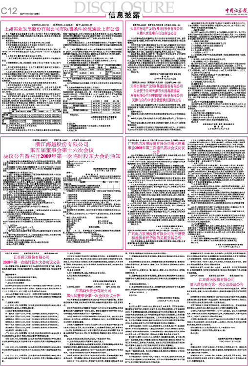 上海金陵股份有限公司第六届董事会临时会议(2008-7)决议公告暨召开公司2009年第一次临时股东大会的通知