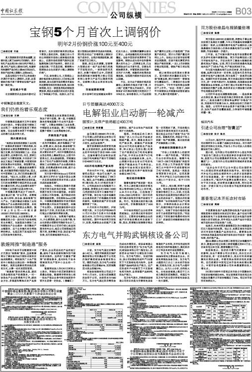 11月末至12月初期间,沪铝再度大跌,主力合约沪铝0903自11月27日后8个交易日内价格暴跌23.42%,12月9日以10200元/吨低价报收。据中华商务网方面统计,近期,电解铝企业的减产又重新萌动,减产企业和生产线有逐渐扩大的趋势。