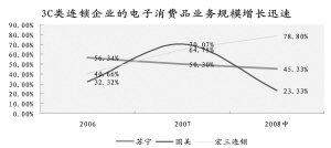 兴业证券分析师指出,从国内IT市场的渠道模式来看,渠道扁平化正成为大势所趋。供应商与3C连锁企业之间的直接供货关系,正在逐步建立并迅速发展。近两年,国美、苏宁、宏图三胞3C业务规模的快速提升,大大高于20%左右的行业平均速度,已经显示出3C连锁业态的强“进攻性”。申银万国也表示,未来规模化、专业化、标准化的直营连锁模式将成为IT渠道的主流,而宏三连锁的IT连锁模式正好顺应了这种消费需求的变迁。