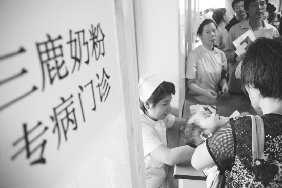 9月14日,在南京市儿童医院,家长带着患儿在“三鹿奶粉专病门诊”就诊。