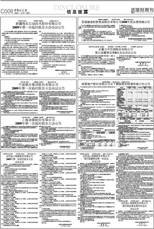 香溢融通控股集团股份有限公司2008年度业绩预减公告