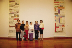 余德耀夫妇和梅嘉瓦蒂、卢昊(右二)在卢昊作品 “花好月圆”前