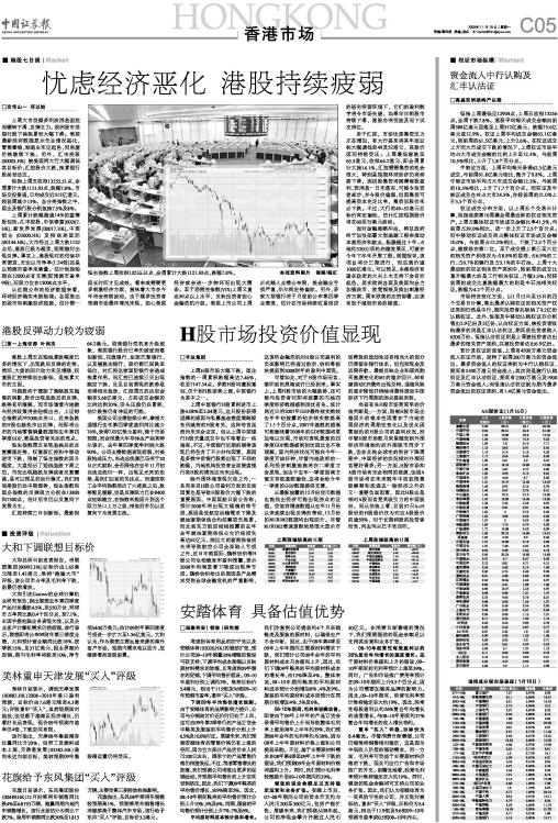 忧虑经济恶化 港股持续疲弱