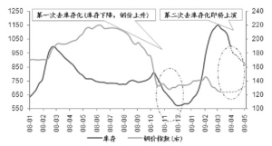 分析师指出,去库存化的进程往往伴随钢价跌势的放缓、企稳、上涨,因此去库存化的再次出现也就昭示着产品价格将逐步企稳。3月末社会库存已处于下降通道,二次去库存化将再次上演。按照第一次去库存化的周期分析,伴随终端需求恢复,分析师判断钢价有望在4月中下旬企稳。