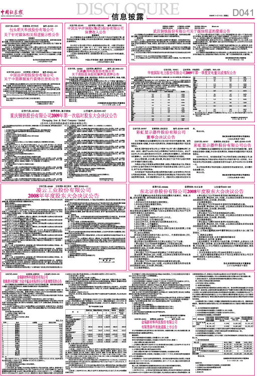 重庆钢铁股份有限公司2009年第一次临时股东大会决议公告