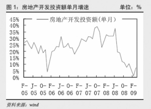 中信证券:就数据而言,开发投资增长的确定性比较低。我们认为,施工面积的增长只是惯性的,开发企业的开工热情仍然没有恢复。决定施工面积的两大因素就是新开工和竣工面积。2009年一季度,全国房屋竣工面积同比增长26.3%,而新开工面积则同比下降16.2%。这两个指标的绝对数受到季节和统计方法影响大很难比较,但同比增速已经说明施工面积的增长只是惯性的。更何况,房地产施工面积同比增速是2001年以来的最低点。而商品房新开工面积单月同比增速负增长的现象在3月份反而扩大。