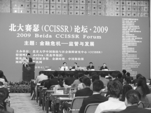 由北京大学中国保险与社会保障研究中心(CCISSR)主办的“北大赛瑟(CCISSR)论坛·2009(第六届)”于2009年4月14日在北京大学英杰交流中心隆重举行。本届论坛的主题是:“金融危机:监管与发展”。