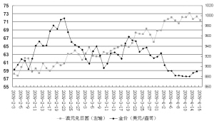 2月份以来澳元兑日圆及金价走势