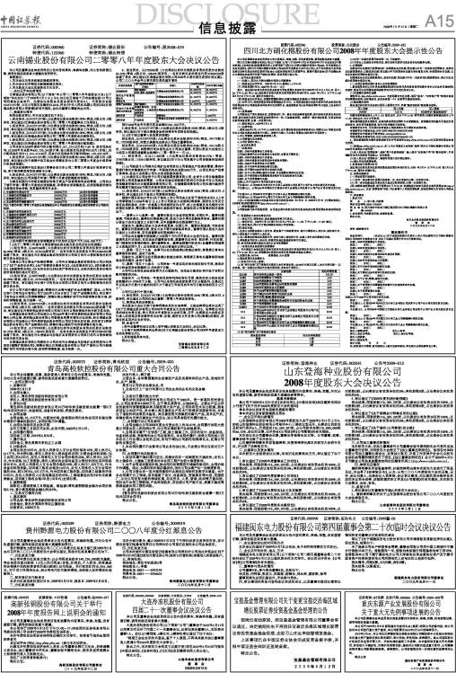 四川北方硝化棉股份有限公司2008年年度股东大会提示性公告