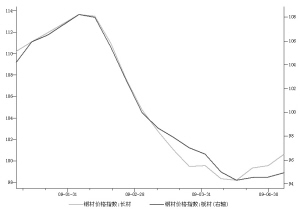 钢材价格近三周连续上涨,上周的涨幅更是明显扩大。具体来看,长材价格指数和板材价格指数分别从4月17日的98.20和94.31上升至5月8日的100.63和94.93。长材价格近三周上涨2.47%,远远高于板材价格0.66%的涨幅,反映出建筑用钢的需求正在逐步转好,房地产市场的回暖以及其他基础设施建设对钢铁行业的拉动效应开始显现。