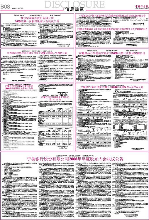 宁波银行股份有限公司2008年年度股东大会决议公告