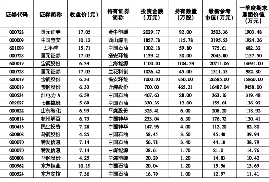 一季度末交叉持有采掘股的股票
