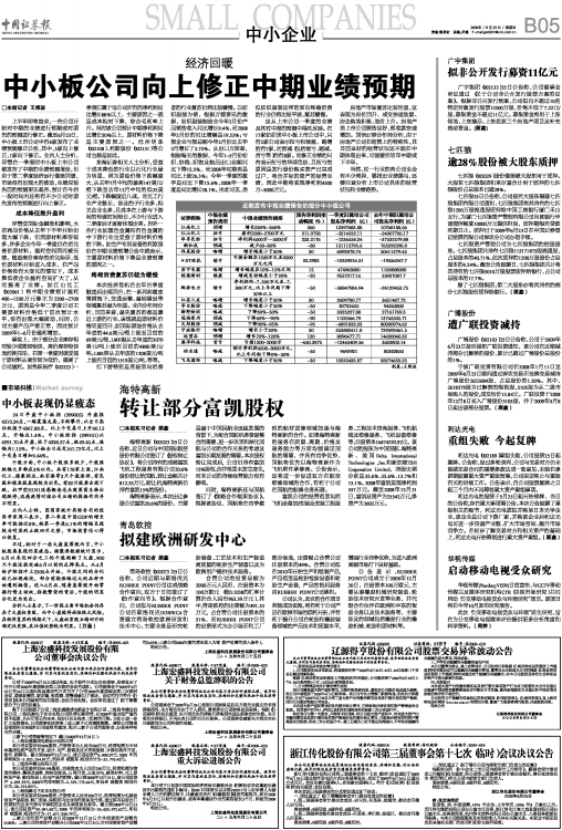 中小板公司向上修正中期业绩预期