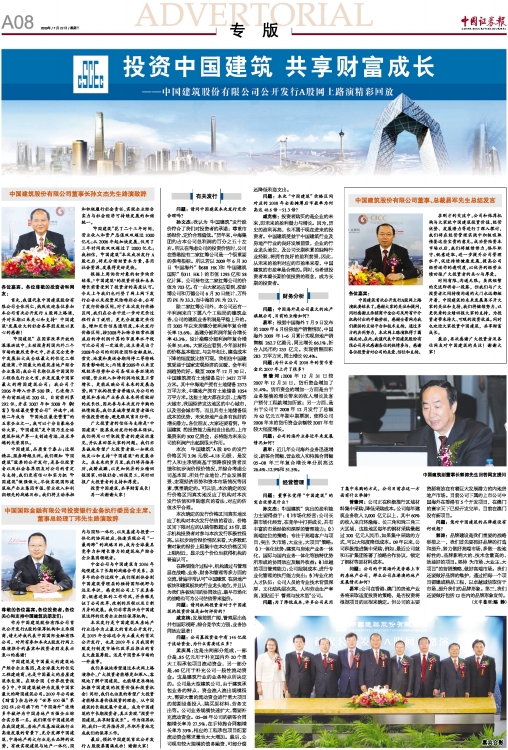 中国建筑股份有限公司董事长孙文杰先生路演致辞